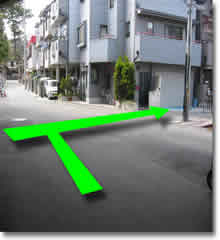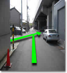 3:高架を越えた所を北向きに右折(右側に歩道がある一方通行の道です)